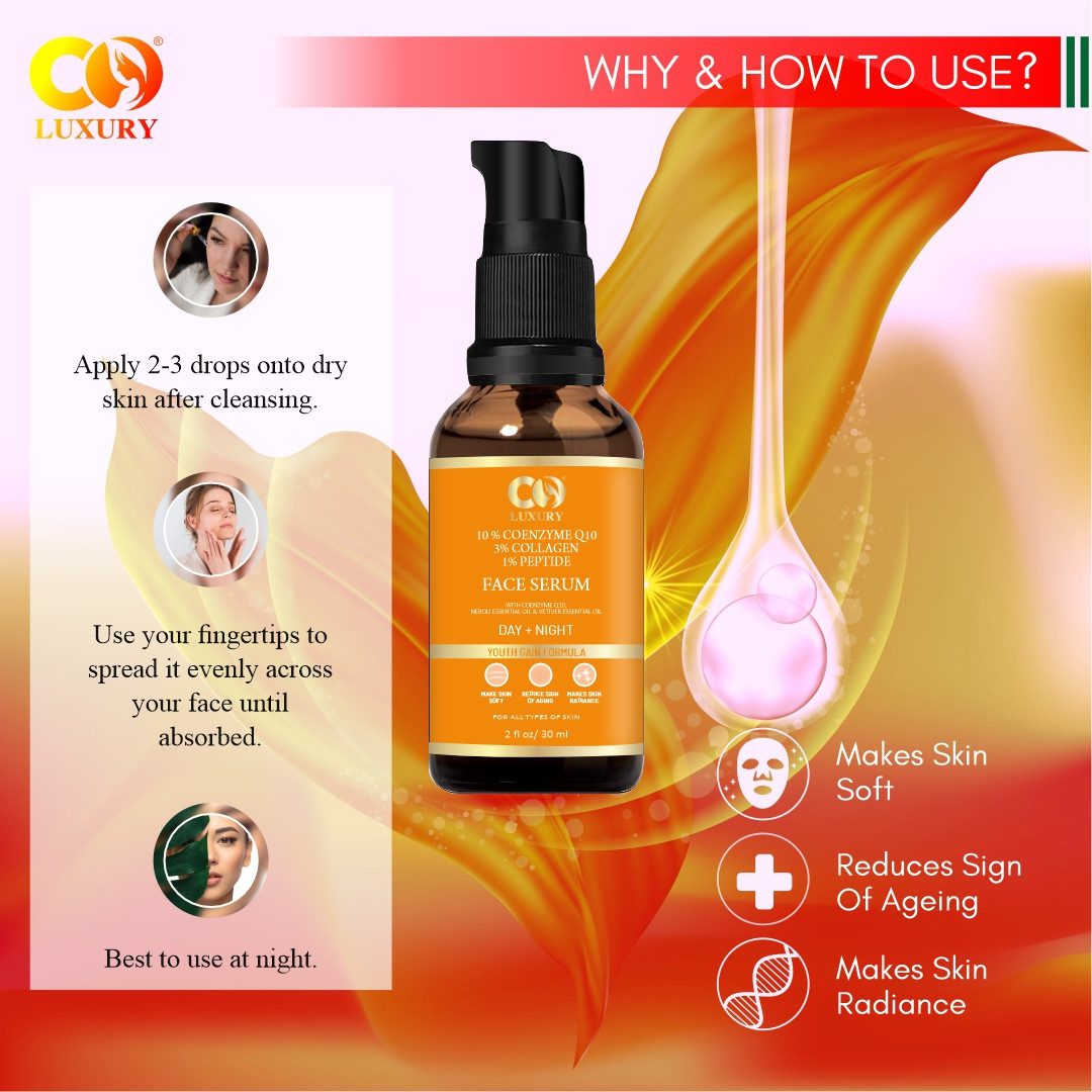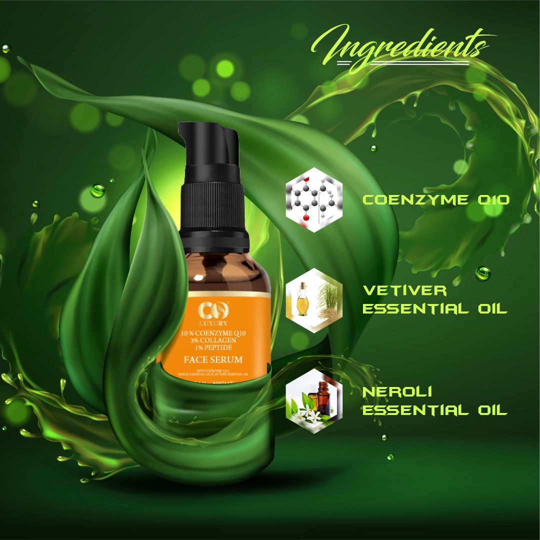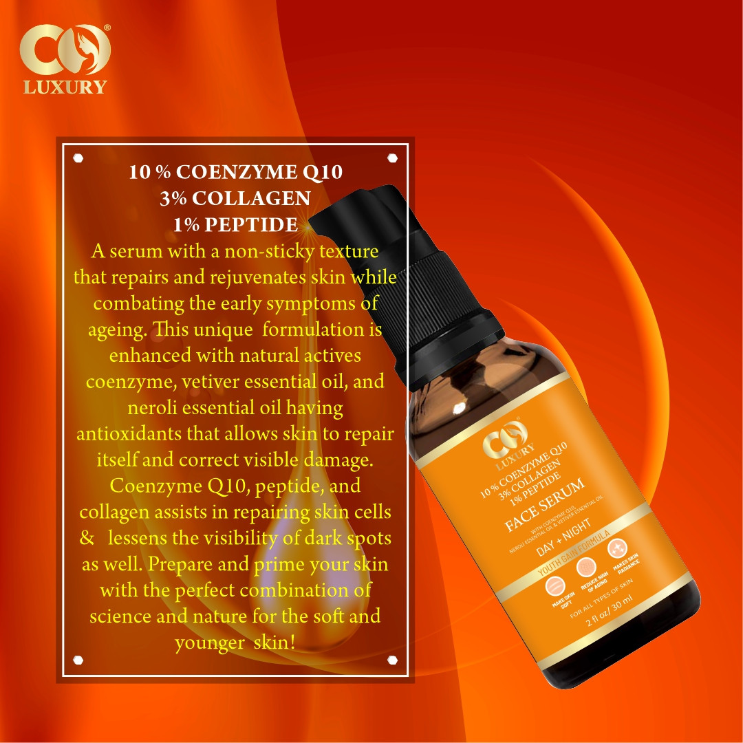 COENZYME Q10 -: CoQ10 supports the body's ability to produce collagen and elastin which can reduce the appearance of fine lines. CoQ10 works to block tyrosinase, which helps with the production of melanin, which means that CoQ10 can helps to fade and prevent dark spots.