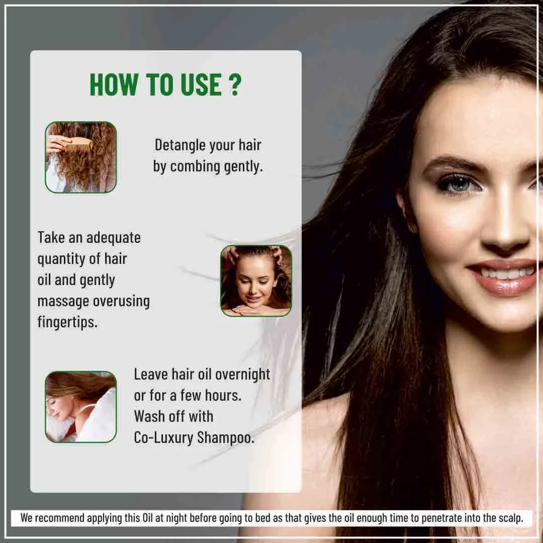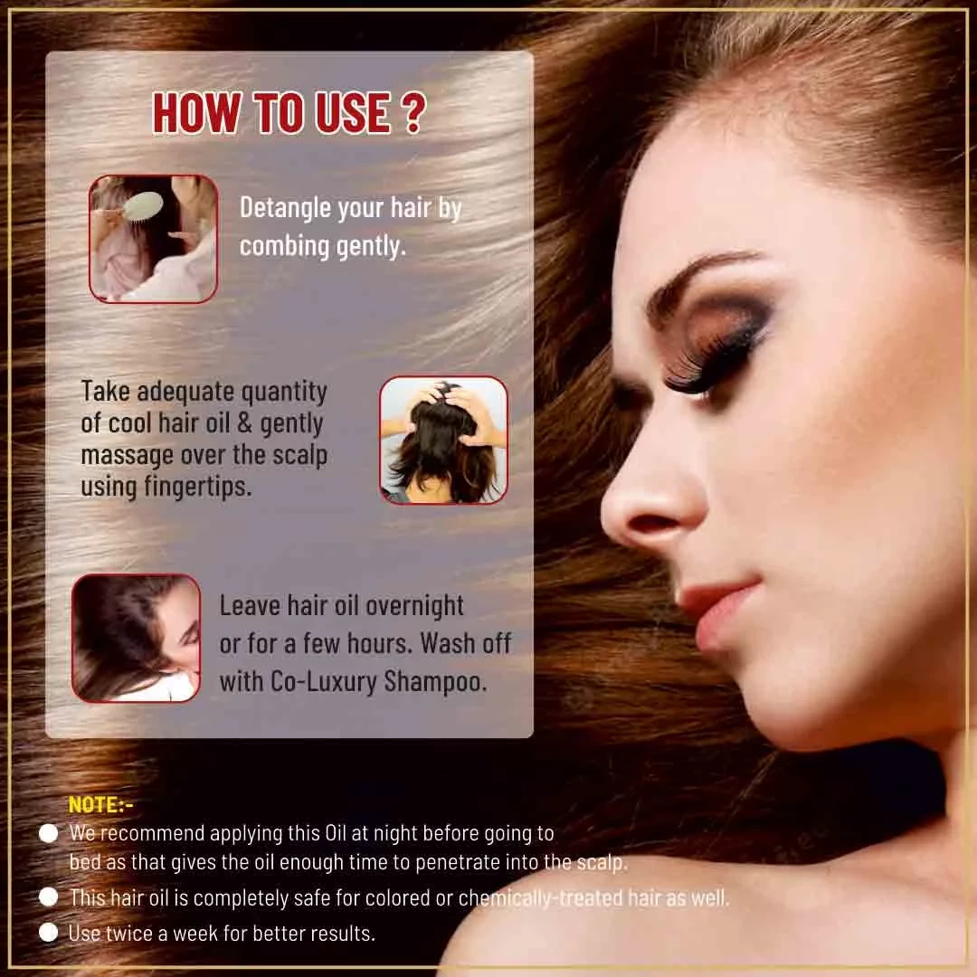 Step 3 - Leave hair oil overnight or for a few hours. Wash off with Co-Luxury Shampoo.