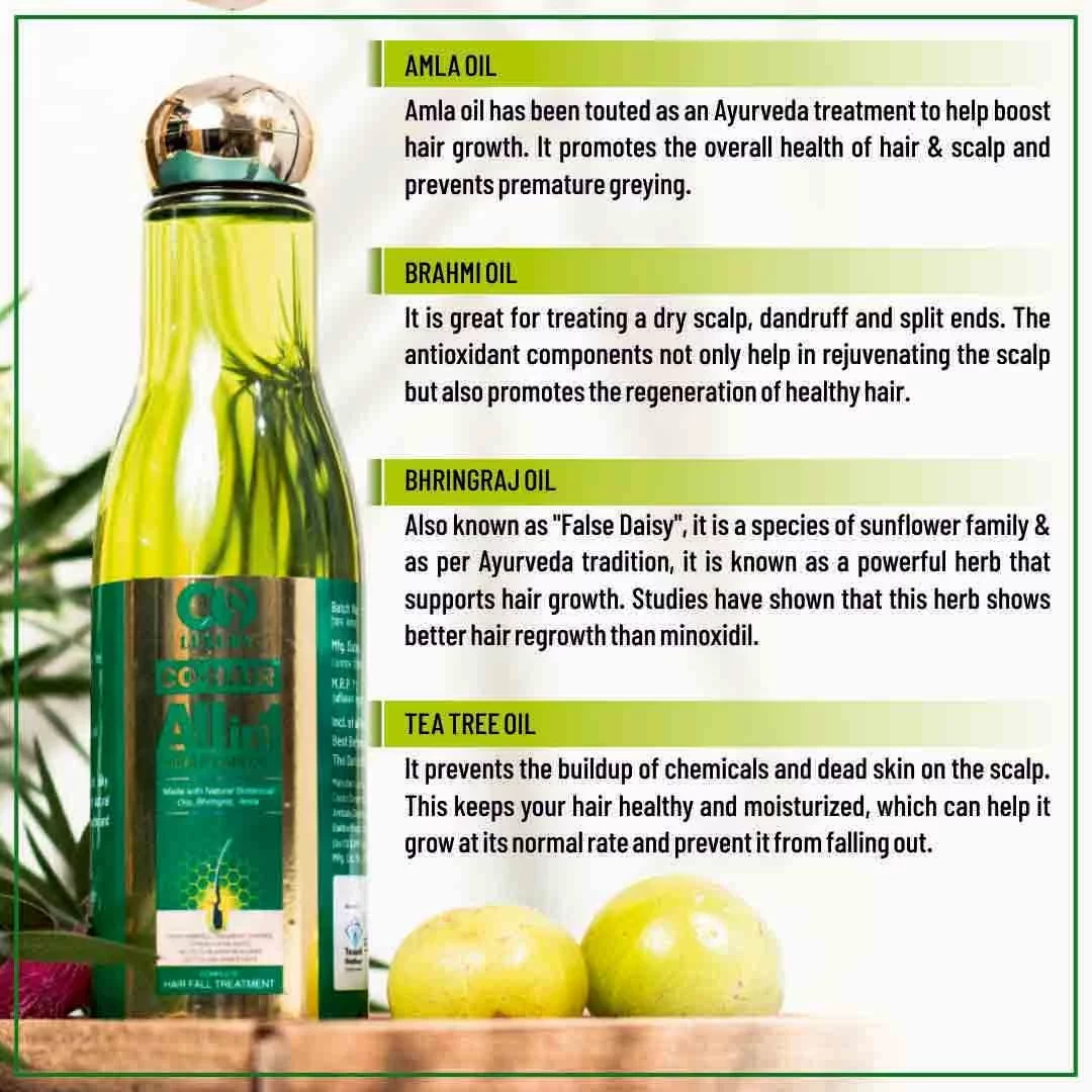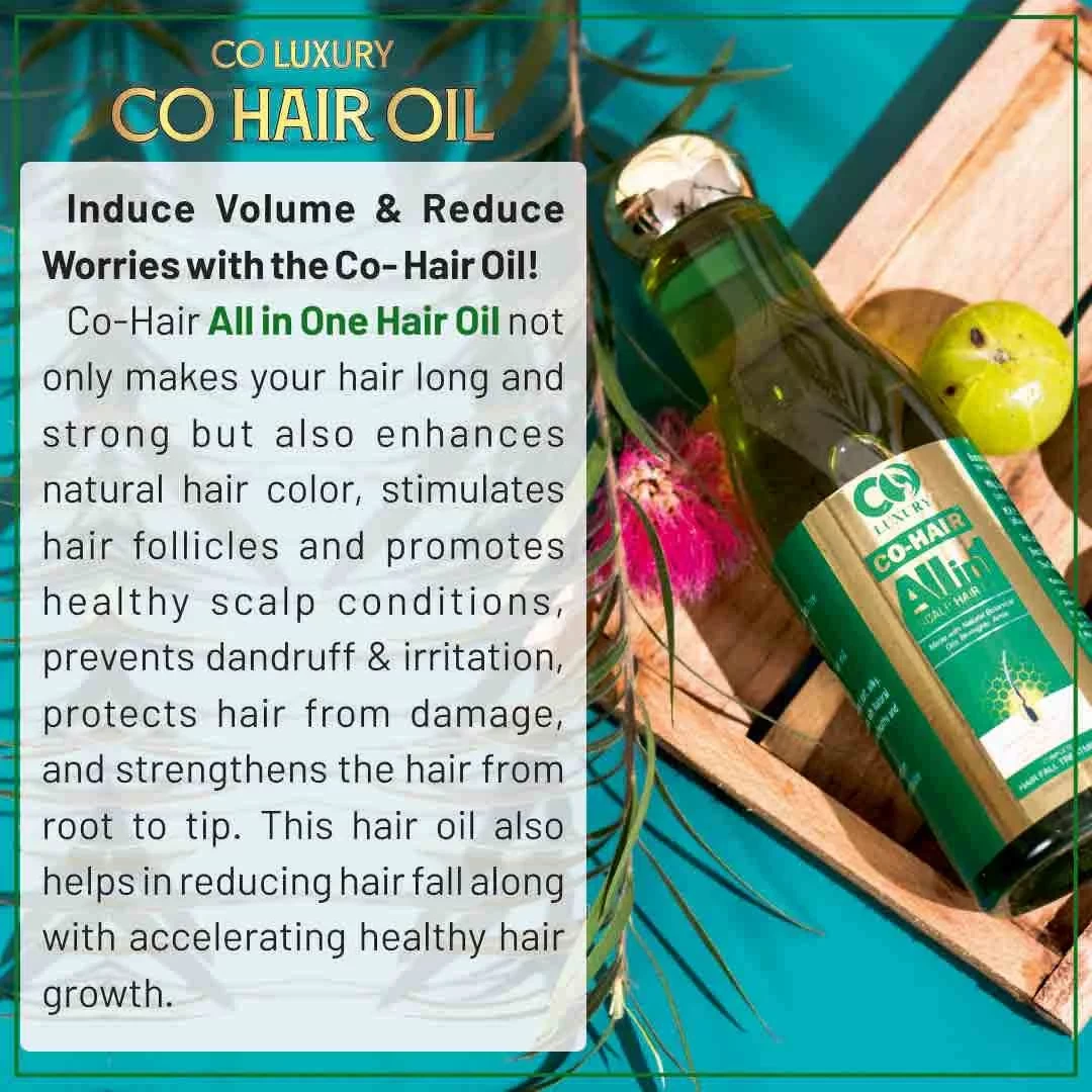 Bring back those younger & stronger hair with this Ayurveda blend of herbal oils & essential oils. Co-Hair All in One Hair Oil not only makes your hair long and strong but also enhances natural hair color, stimulates hair follicles and promotes healthy scalp conditions, prevents dandruff & irritation, protects hair from damage, and strengthens the hair from root to tip. This hair oil also helps in reducing hair fall along with accelerating healthy hair growth. Its lightweight yet non-sticky chemical-free formula with a soothing fragrance relaxes your mind & improves your hair's health, strength with continuous usage. This Nourishing hair oil is all you need for better hair care.