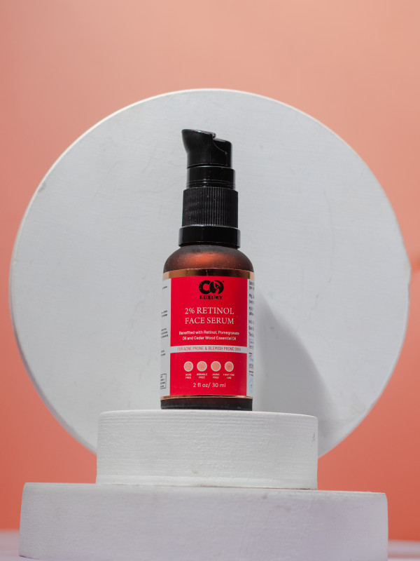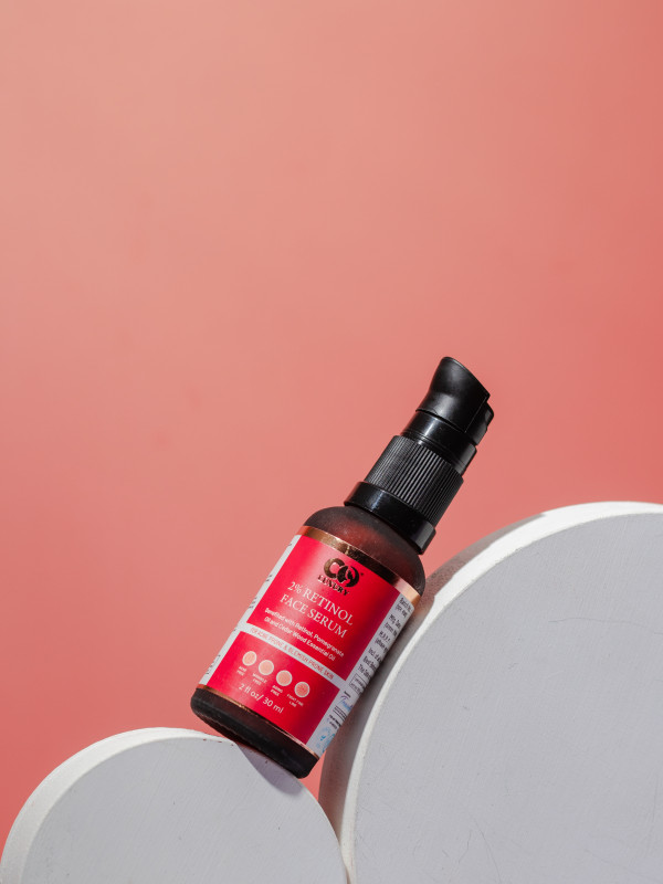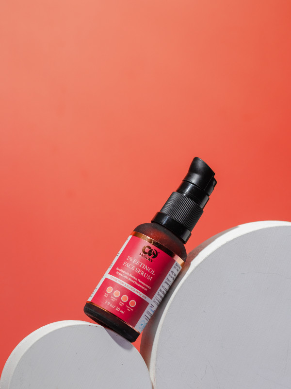 A highly stable & powerful anti-aging face serum packed with Retinol, Pomegrenate oil and cedar wood essential oil. Retinol (Vitamin A) is the gold standard & most proven ingredient for anti-aging and skin renewal. Collagen, a type of protein, makes up over 70% of our skin and among many functions; it gives skin its structure, and elasticity. As we age, our body's ability to produce this protein decreases. Retinol primarily helps works by inactivating the MMP enzymes, resulting in increase in amount of collagen in our skin. It also increases the cell turnover rate, which results in older cells getting replaced by newer cells. This particular property makes Retinol very effective in treatment of acne as well.