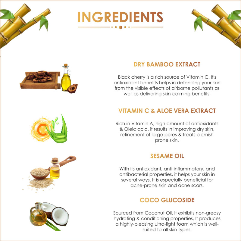 BAMBOO EXTRACT POWDER-: Dry Bamboo actually contains 70% natural silica which is an organic compound that is essential for the body and works to keep your skin looking healthy, supple, and radiant.