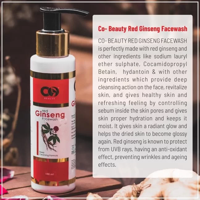 Co Company Introduce Co-Beauty Red Ginseng Face Wash. Red Ginseng (one of the most expensive herbs in the world), is a significant part of herbal remedies for the past 2000 years and is best known to protect the skin from harsh UVB rays along with showing remarkable anti-aging effects. Being high in antioxidants, Red Ginseng has countless beneficial qualities. Whereas, the Sodium lauryl ether sulphate & Cocamidopropyl Betaine are super gentle and mildest foaming surfactants which along with Red Ginseng, show a deep cleansing action on the face, refreshes the skin by controlling sebum, gives proper hydration, and helps dry & lifeless skin to achieve a radiance again. The gentle yet effective soap-free formula is perfect for daily use for all skin types in all weather conditions. From reducing the skin dullness to the renewal of youthful skin, this face wash is all you need for exceptionally smooth, even-toned, lustrous skin.